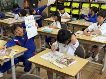 国語の授業で今日から「見立てる」という短い説明文に入りました。そこでまずグループで音読練習をしていました。一通り読んで内容も分かってきたところで、筆者の考えが書かれている部分を探しました。ここで文章の構成について学習したことが、次の長い説明文の授業に関連してくるようです。
