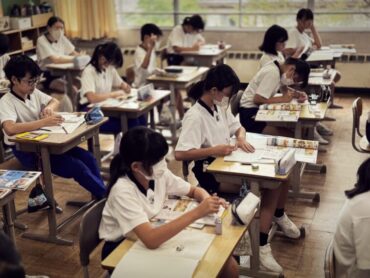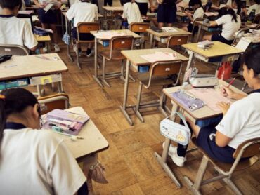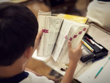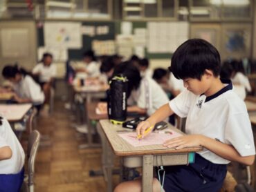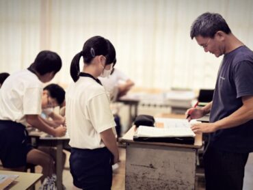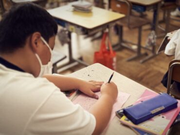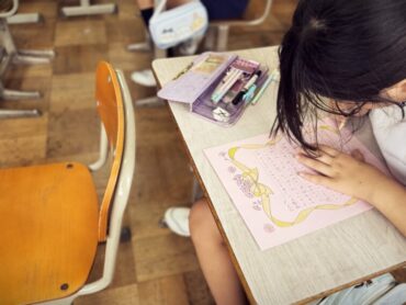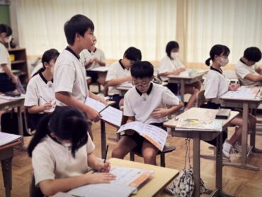 英語の授業でドリルに単語を書いていました。友達に誕生日を聞いて記入するところがあり、”When is your Birthday?”と質問し合う様子があちらこちらで見られました。
