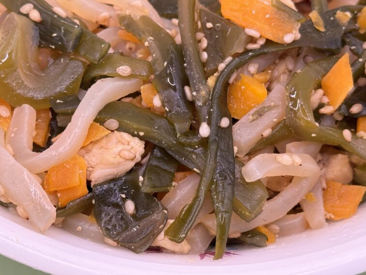 茎わかめは、名前の通り、わかめの茎の部分で、中芯と言われます。コリコリした食感が特徴で、炒め物や、つくだ煮に使われています。みそ汁やサラダに使用しているわかめは、葉の部分を食べています。栄養成分をわかめと比べると、カルシウムや食物繊維はわかめの2倍、マグネシウムはわかめの4倍も多く含まれています。栄養満点な、茎わかめをおいしくいただきましょう!