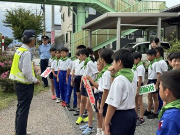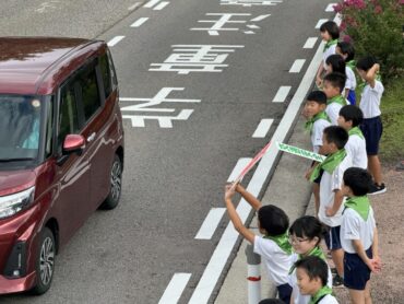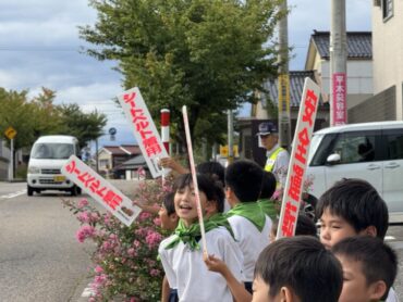 とてもよく声が出ていたので、お褒めの言葉をいただきました。4年生の皆さん自身も歩いて出かけるとき、自転車に乗るときには交通安全に十分気を付けましょう。