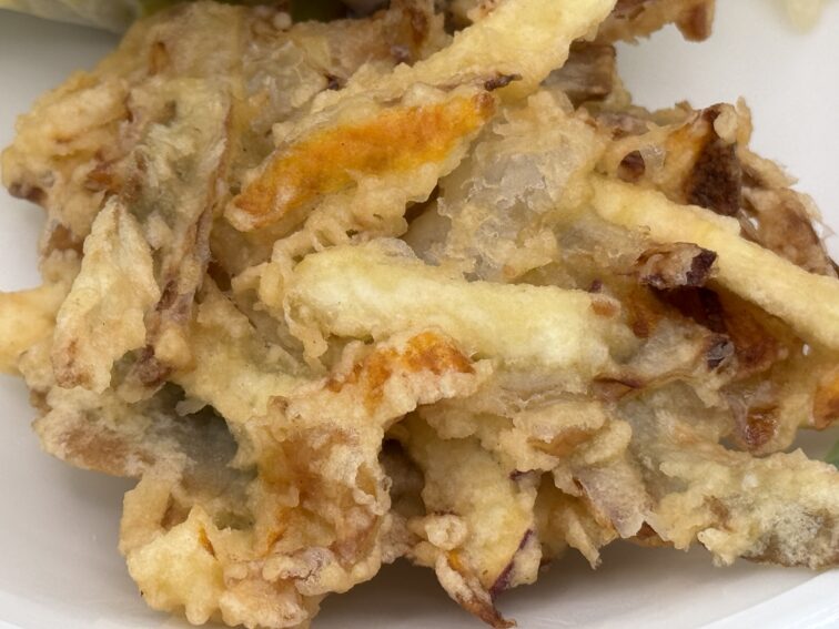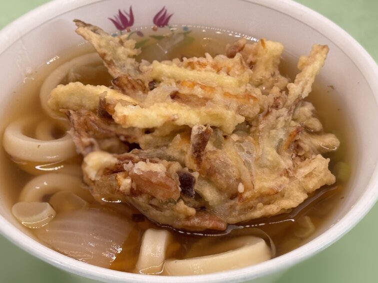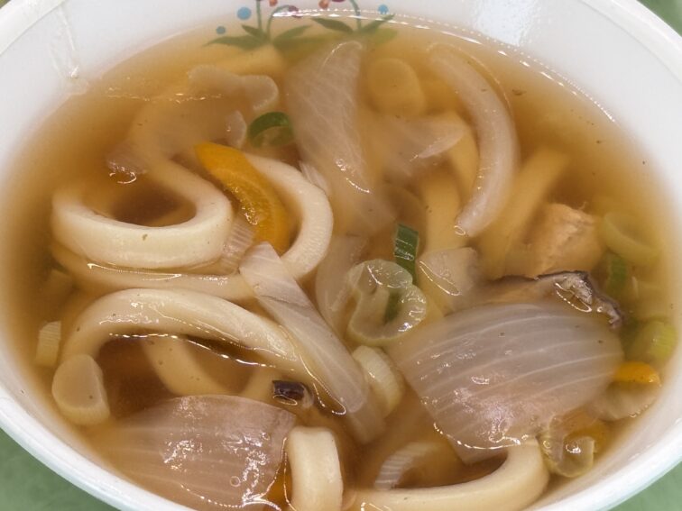 今日は、五目うどんに合う「かき揚げ」にしました。今日のかき揚げは調理員さんが一つ一つ丁寧に手作りしてくださいました。秋の気配を感じながら食べましょう。