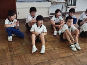 教室で学習発表会の「くじらぐも」の中に出てくるダンスの練習です。ちょっとお疲れ気味の1年生も見られましたが、少し休むとまた頑張っていました。
