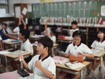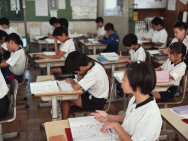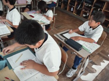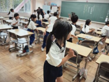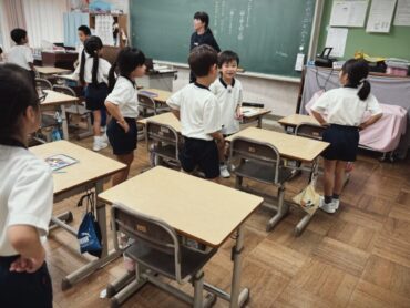 算数の授業の終わりで、今日の学習のまとめをノートに書いていました。4年生ともなると先生が黒板に書く文章を見ながら、先生の速さに合わせて、手際よく書き進めています。