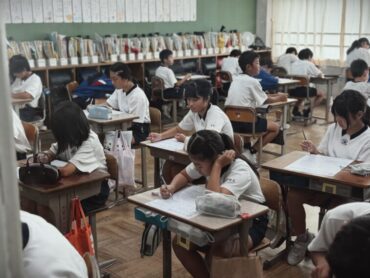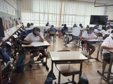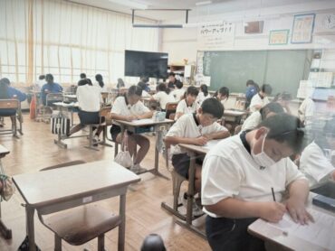 学習発表会を目前にして、練習は毎日一生懸命頑張っていますが、勉強も計画的に進められています。今日は、テストが行われていました。集中して取り組んでいました。