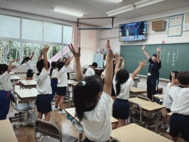 次の時間は外国語活動。学習用具の英単語で、「キーワードゲーム」をして楽しく授業が進められていました。友達と対戦して、キーワードが読み上げられたときに素早く反応できた方が勝ちです。喜びの声が上がり、ガッツポーズも見られました。