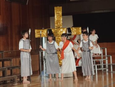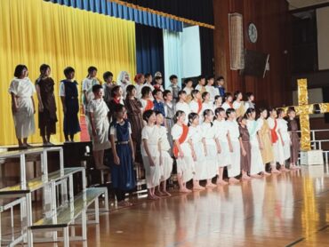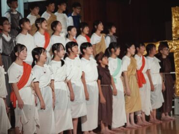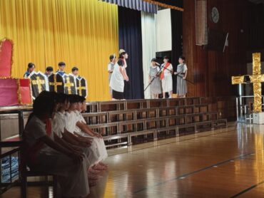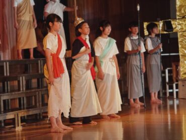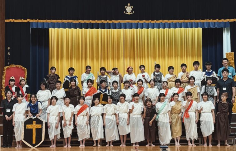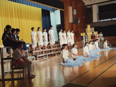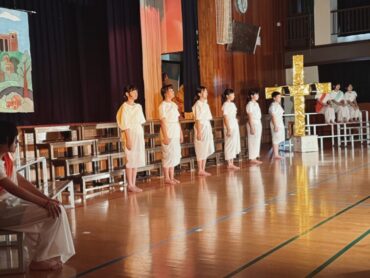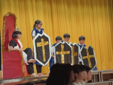 6年間の学習の集大成のステージ発表です。全員で力を合わせて、長い劇を演じ切りました。その一生懸命さが見る人に感動を与えました。終了後の6年生の表情には、やり切った!という笑顔が見られました。