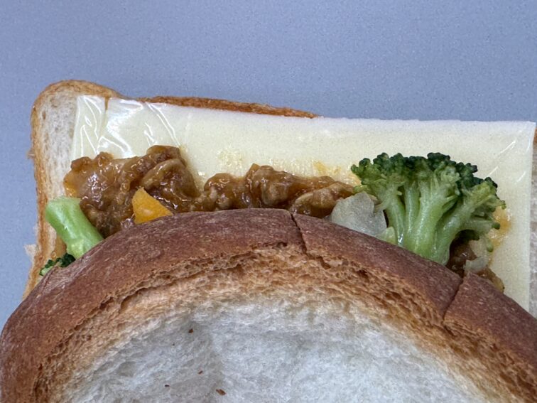 食パン+野菜サラダ+キーマカレー+スライスチーズで完成です!