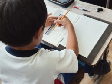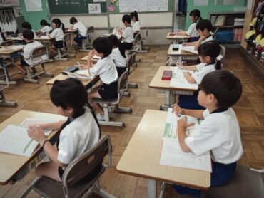 道徳の「ぼく もちます」の授業でした。登場人物の気持ちを考えました。授業の終わりに、教科書の「まなびの あしあと」のページに今日の振り返りと「顔マーク」を書きました。にっこりマークは描けたかな?