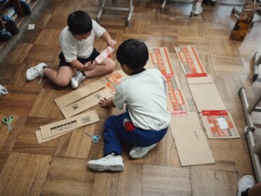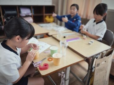 生活科でいろいろな遊び道具を手作り中。カラフルないろいろな材料を使って、友達と協力しながら楽しそうに活動していました。完成してみんなで遊べる日が待ち遠しいですね。1年生にも遊ばせてあげるのかな?