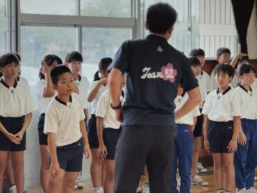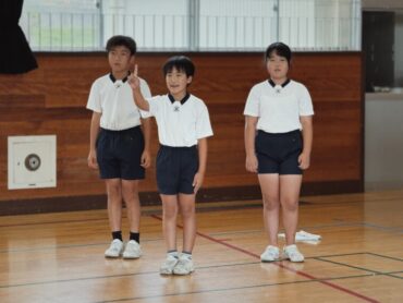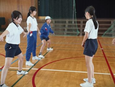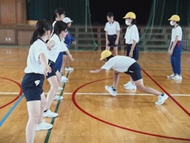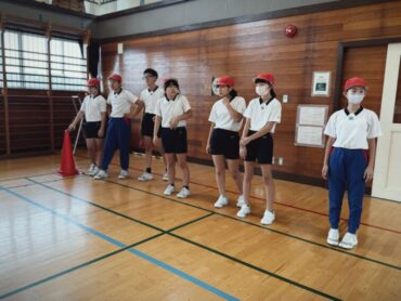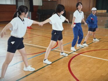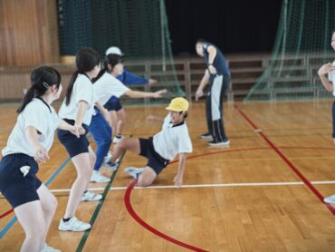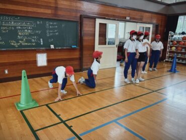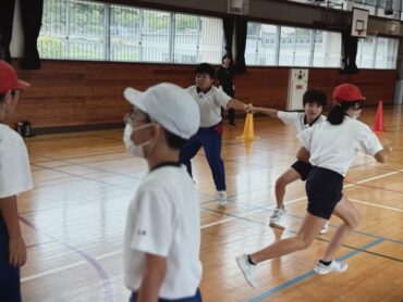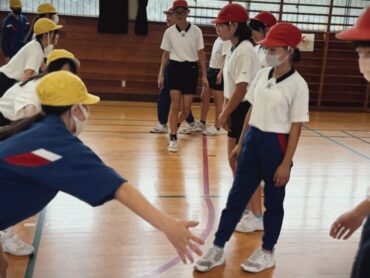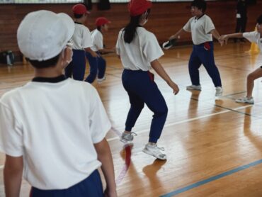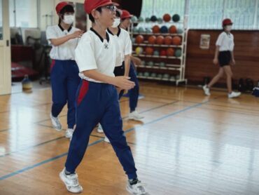 小雨が降ってきて、朝5運動は各教室でハッピー体操となりました。