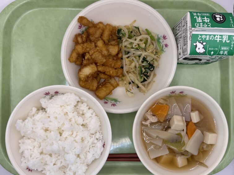 今日はいかについてのお話です。いかには、スルメイカやアオリイカ、ヤリイカ等様々な種類があります。今日の給食に使用しているアオリイカはタンパク質が豊富で低脂質です。消化吸収もよく、疲労回復効果やコレステロールを低下させる働きがあります。高血圧や心臓病予防にも効果が期待できます。かみ応えもあるかみかみ食材で、早食い防止になり肥満予防にもつながります。よくかんで食べましょう!