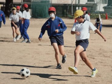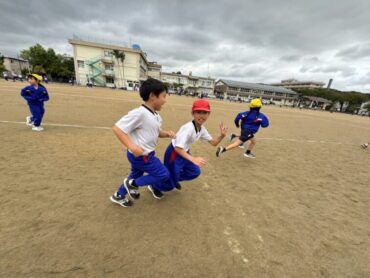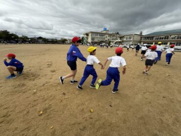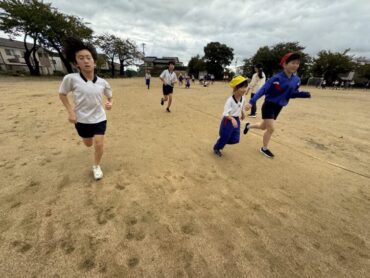 後ろから追いかけてくる児童や、前を逃げる児童。ナイスランです。