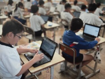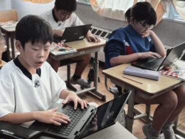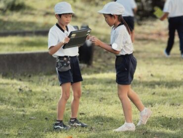 4年生は5時間目にも理科で学習専用端末を持って外に出ていました。