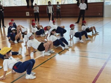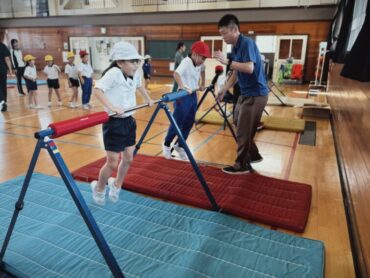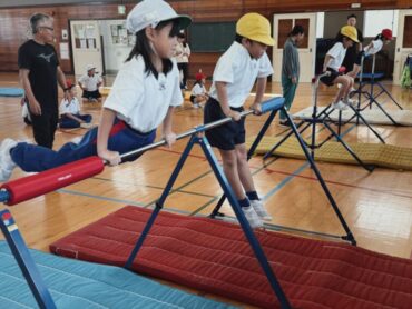運動遊びアドバイザーの富山大学准教授の先生に来ていただき、2年生の鉄棒やマット運動の指導をしていただきました。
