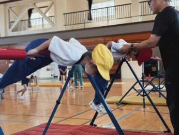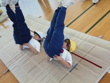 最後に運動遊びアドバイザーの先生は「普段の生活ではさかさまになることがないから、どんどんさかさまになることに慣れたらいいですよ」と言われました。ぜひ、家でも安全に気を付けてやってみるといいですね。