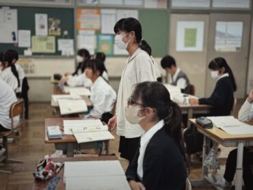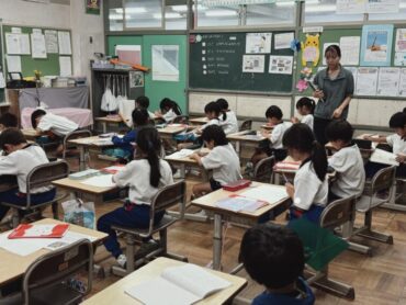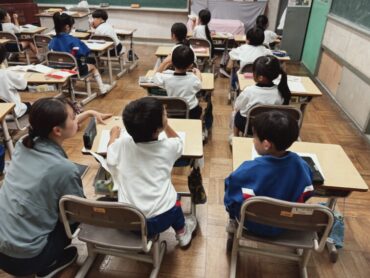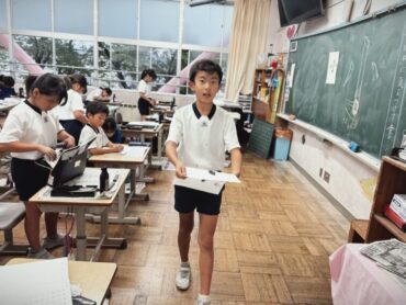 道徳のような国語の授業でした。友達に伝えにくいことを伝えるとき、どのような言い方をすればよいのかを勉強していました。大型テレビに提示されていたのは「みんなが遊ぼう!と言っているのに、自分は遊びに行けない場面」でした。どのようにそのことを伝えたらよいか、ユニークな考えも出ました。ありそうなケースで、みんな一生懸命に考えていました。
