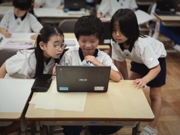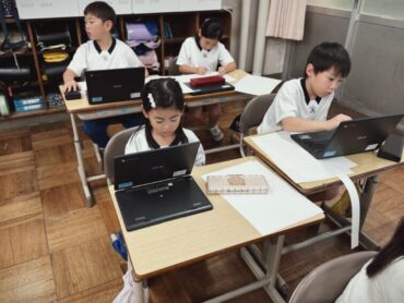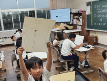 図工の時間に学習専用端末で絵を検索していました。いろいろな生き物等のシルエットを探して、それを参考にシール紙に鉛筆で下書きをすることになっているようです。検索を楽しんでいる児童もいれば、早い児童は「もうできた!」と自信満々に見せてくれました。