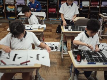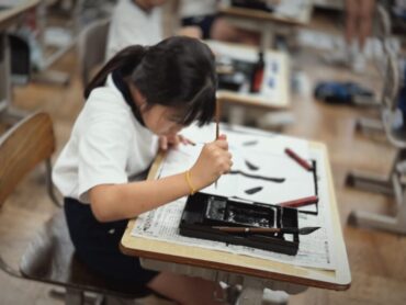 習字の時間に「小」という文字を書きました。お手本を見ながら、一画一画丁寧に筆を動かしていました。漢字一文字なので、大きく、力強く書くといいですね。