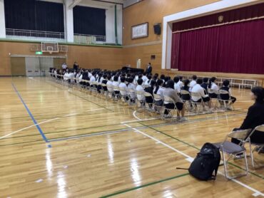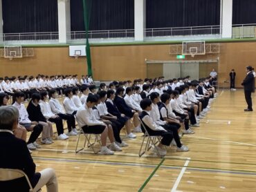 その後、中学3年生の合唱コンクールのリハーサルを鑑賞しました。リハーサルとはいえ、中学生の混声3部合唱の歌声はさすがにとても素晴らしかったそうです。