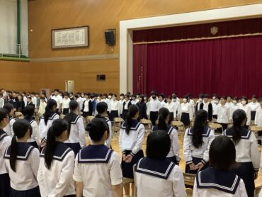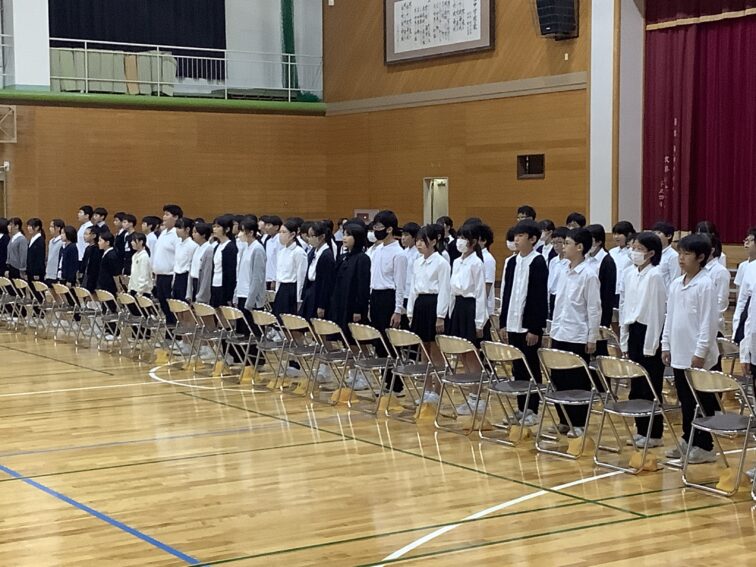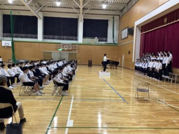 古府、伏木、太田の小学生と中学校3年生が一緒に「翼をください」を歌いました。体育館中が美しい歌声で満たされました。