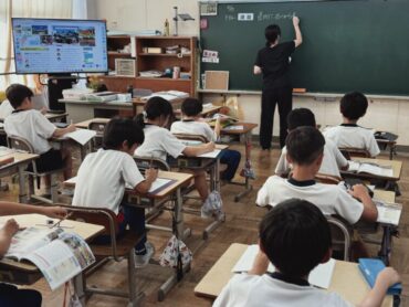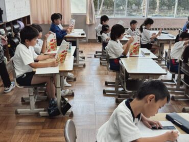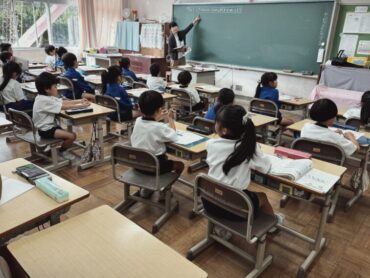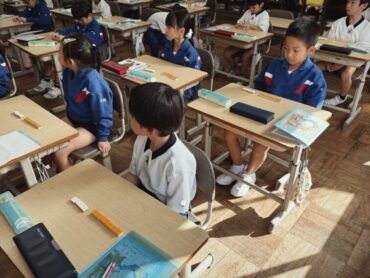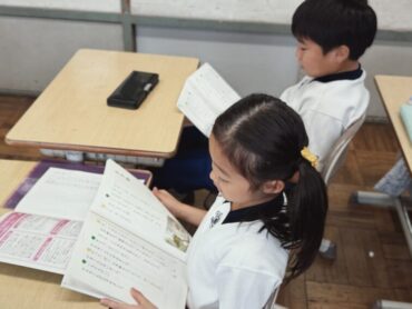2年生の1時間目の授業は国語です。教科書の「お手紙」をみんなで声を合わせて読んでいました。ちょっとついていくのが大変そうな児童も。家でも音読練習をたくさんしましょう。国語がよくわかるようになりますよ。