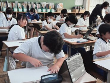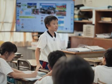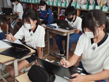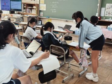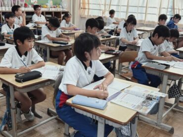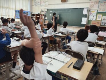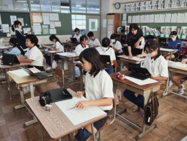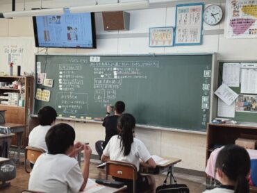 4年生の5時間目は社会でした。先生が黒板に課題を書き始めると、ほとんどの児童が言われなくても素早くノートを取り始めました。よい習慣が身に付いています。県内に古くから残っているものについて「どうして残っているのか」について、進んでいろいろな予想を発表していました。