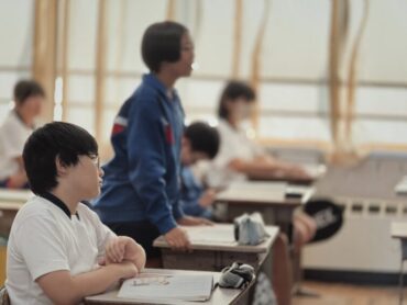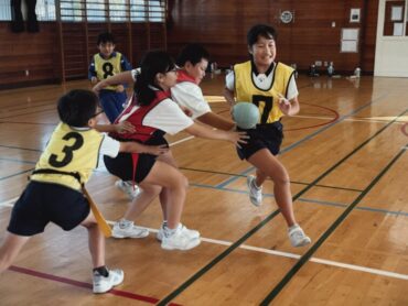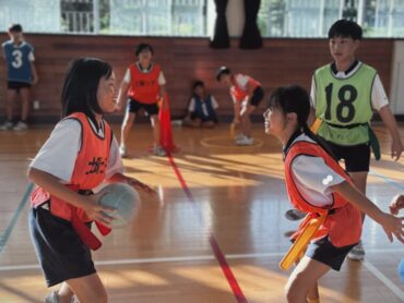 5時間目は中学生と体つくりの運動をし、6時間目はタグラグビーのリーグ戦の2回戦を行いました。2時間続きの体育ですが、5時間目の疲れもあまりなく、とても活発に動いて楽しんでいました。