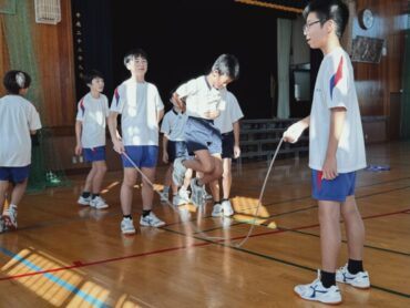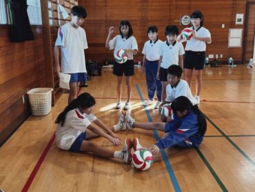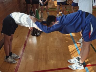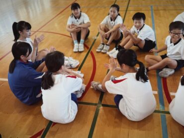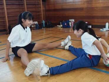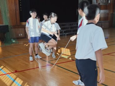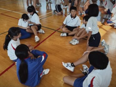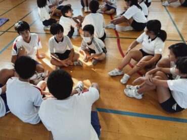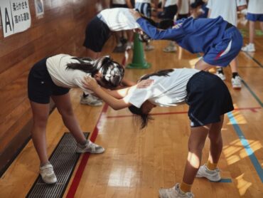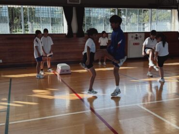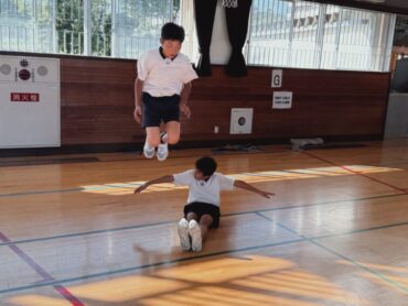 中学生が教えてくれたり、ペアになって運動してくれたりして、小学生もとても楽しく様々な体つくりの運動に親しむことができました。