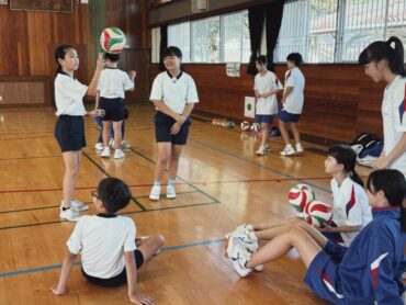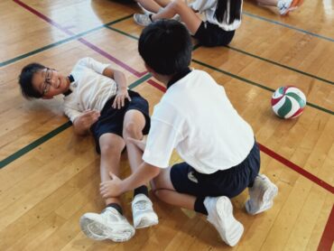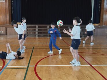 10/17(金) 伏木中学の生徒と5年生が合同体育をしました。
