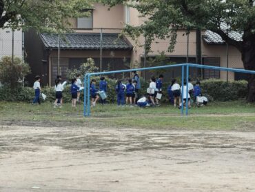 1組と2組が合同体育で、外でサッカーの練習をしていました。そんなときに雨が降ってきて、急いで教室に戻りました。