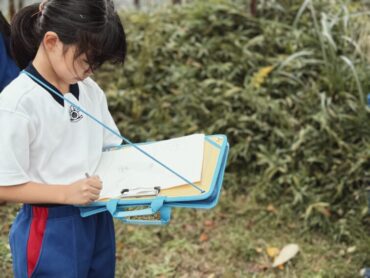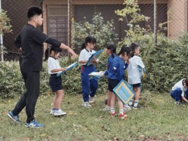 生活科の学習でグラウンドへ。秋の生き物や植物を見付けて、記録していました。ところが、ぽつぽつと雨が降ってきました。急いで校舎内へ入りました。せっかく一生懸命に描いていたのに、残念でしたね。