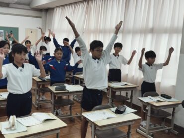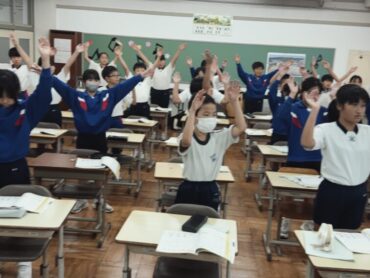 朝はずいぶん冷え込んできました。グラウンドコンディションがよくなかったため、朝5運動は各教室でのストレッチ運動「ハッピー体操」となりました。