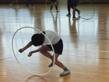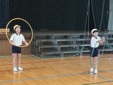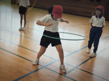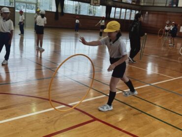 体育で、今日は「フープ島」の動きに挑戦しました。フラフープは、回したり、跳んだり、潜り抜けたり、転がしたり・・・様々な運動ができます。3年生はどんどんいろいろな使い方で運動を楽しみました。