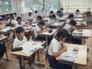 4年生は31日に校外学習に行きます。授業の前半はしおりを読んで、めあてや持ち物等を確認しました。その後は、社会科の勉強です。すぐに気持ちを切り替えて、ノートに今日の課題を書いていました。
