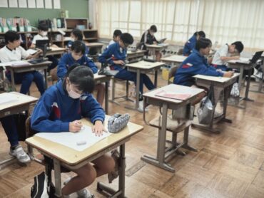 校内の研修会で2年生の体育の授業を先生方が見て、放課後に勉強会をしました。授業の様子はこちらからご覧ください。