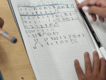 今日の算数の時間では69÷3の計算の仕方を考えていました。自分で方法を考えた後、隣の友達と考えを交流しました。これまで勉強してきた計算方法を使って、69を60と9に分けて別々に計算すればよいことに気付きました。