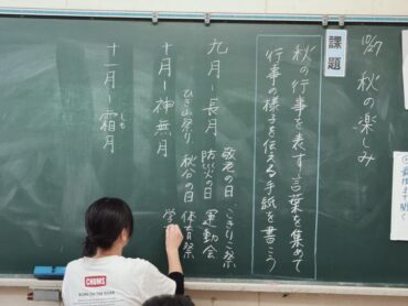 国語の授業で、9月、10月、11月の行事にどのようなものがあるか調べてきたことを発表していました。言いたい行事がたくさんあって、次々に4年生は手を挙げて発表しました。「ハロウィーン」が特に言いたかったようで、誰かが答えた時に「あ~あ」という声が教室のあちらこちらから聞こえました。