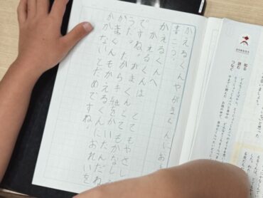 国語「お手紙」の授業の続きです。今日は2年生が「かえるくんやがまくんにお手紙を書こう」という活動でした。「手紙を書く」というのが2年生の意欲を高めたようで、ノートに熱心に書いていました。