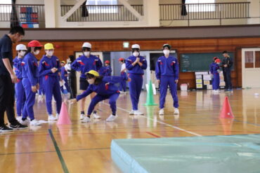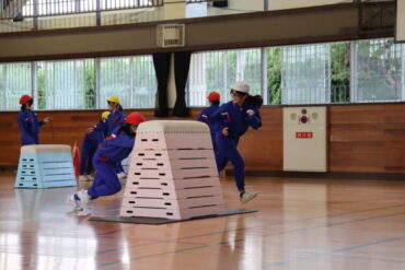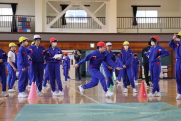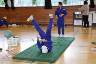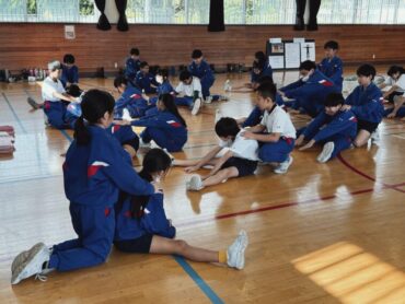 体育の授業で実際に体つくり運動に取り組みました。準備体操の後、先生のデモンストレーションを見て、活動場所に分かれてチャレンジしました。ミッションが達成できるように、タイムを意識しながら頑張っていました。