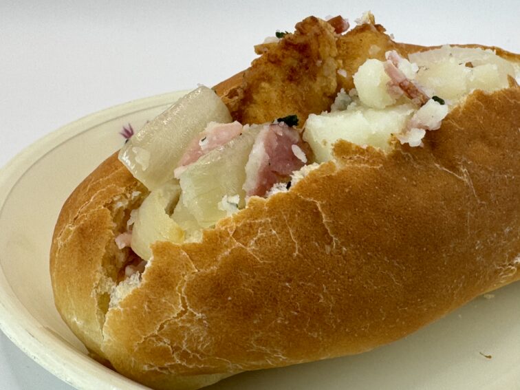 パンに鶏肉とジャーマンポテトを挟みました。美味です!
