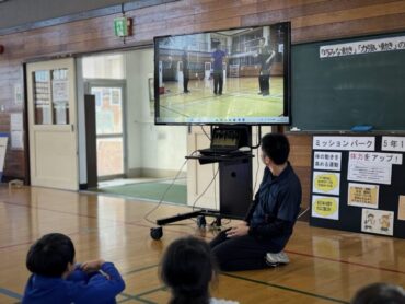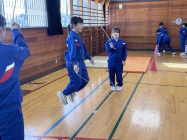 体育の体つくり運動の2時間目です。短なわでの準備運動の後、先生作製の見本動画を見て、それを参考に運動をしました。ぐっと力を入れてそれを持続したり、素早く動いたり、いろいろな動きを取り入れて体を動かしました。