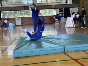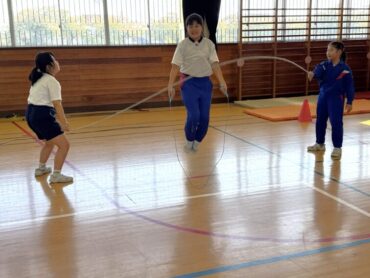 体育の体つくり運動の3回目です。今日はこれまでやってきた運動を自分たちで工夫しました。ちょっとレベルアップして、クリアできるように繰り返し挑戦していました。楽しく活動して、運動能力が高まるといいですね。