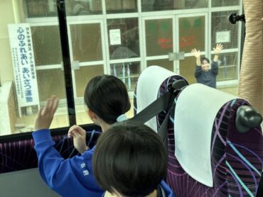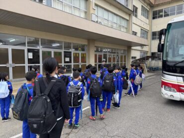 4年生は、朝から社会科の校外学習へ行ってきました。見送りの先生に手を振って、元気に出発。