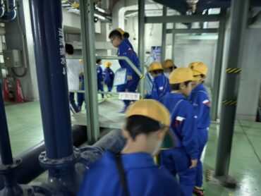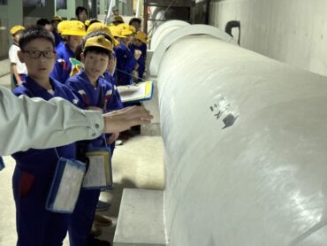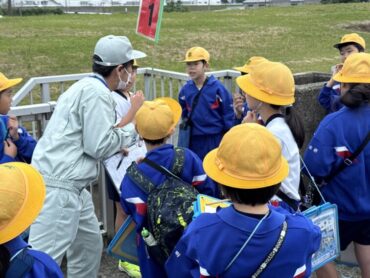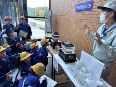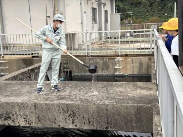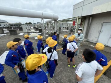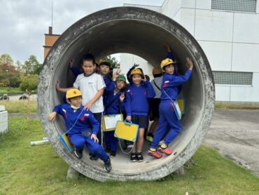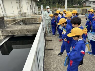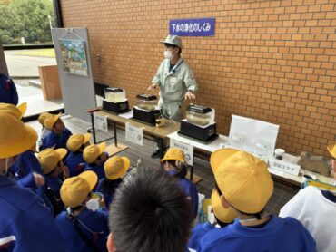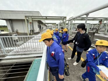 再び地下へ入り、たくさんの配管を見ながら地上へ。すごい配管です。最後に下水が処理されて水がきれいになっているのを見せていただきました。「ほんとや!」と感心していました。「飲める?」と聞いている児童もいましたが、消毒はしていないのでおなかを壊すそうです。