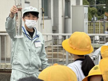施設見学で微生物を使って水がきれいになっていく様子を見ました。微生物が動く様子に目を見張っていました。