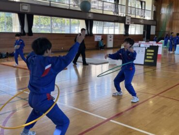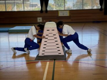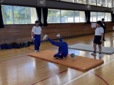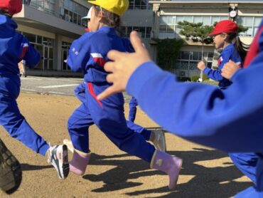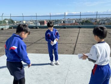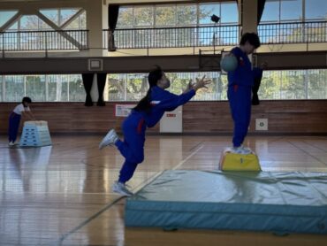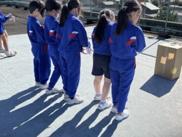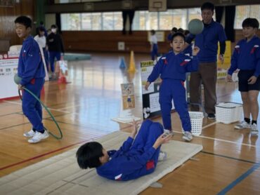 体育の授業で今日は「『巧みな動き』『力強い動き』の運動を自分たちで工夫しよう」という活動でした。巧みな動きを取り入れた運動や力が必要な運動を考えて、取り組んでいました。パワーアップできたかな?