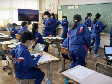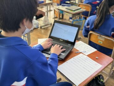 英語の授業で、「~の国へ行きたい。~したい。」のような文を書いていました。したいことは様々あって、教科書には載っていない単語もあり、学習専用端末で翻訳サイトを利用して調べていました。すっかり手馴れている感じです。