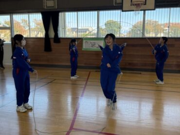 2学年合同で持久走記録会の練習を行いました。準備運動をしっかりとしてから、スタートしました。時折きつそうな表情を見せながらもゴールまで頑張りました。