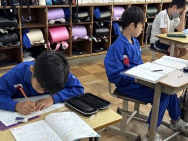 今日は下校時刻が早いので、連絡帳を書いていました。ひらがなもしっかりと書けるようになってきていますね。書き終わった1年生は、正しく書けているか先生に確かめてもらいました。
