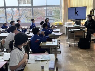 外国語活動の時間に、アルファベットの発音練習をしています。英語専科の先生から、特にGとZやLとR等の発音の違いの説明を聞いて、気を付けて発音していました。アルファベットのキーワードゲームも、先生が言ったキーワード(アルファベット1文字)に素早く反応していました。